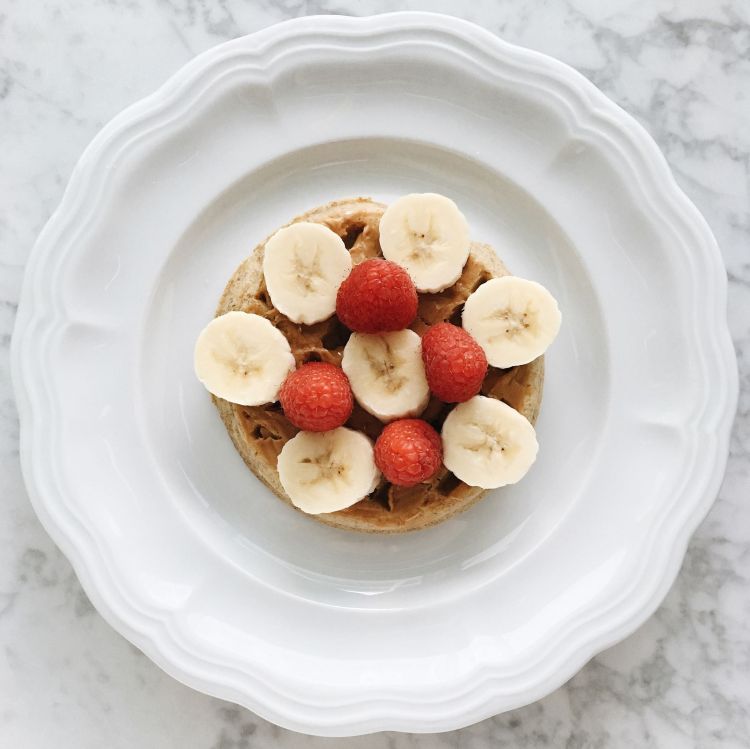 Who doesn’t like waffles?! Here’s a grown up version that is simple and sure to satisfy your taste buds! Have it for breakfast or a snack! All you need is: a whole grain waffle (I love Vans ), a tsp of all natural nut butter (love Justins Almond Butter), banana and raspberries.